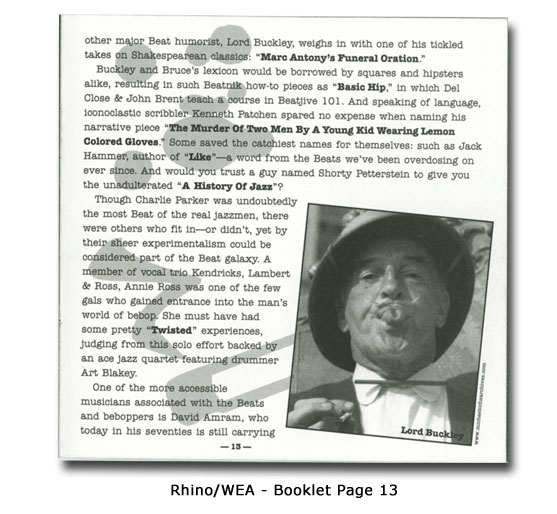 Excerpt from pages 12 & 13 of the best of the BEAT GENERATION Booklet Notes