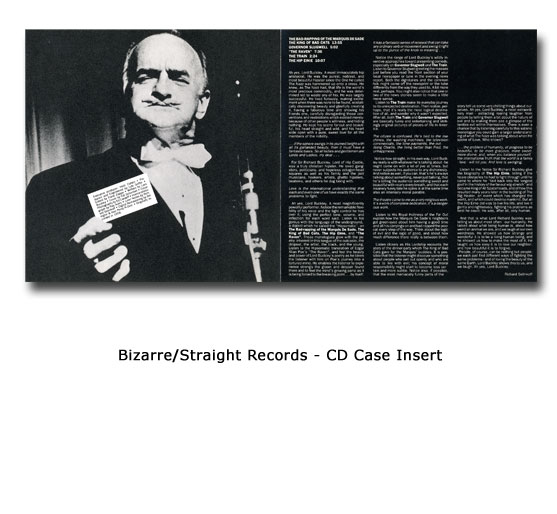 Re-released on LP as a most immaculately hip aristocrat in Great Britain by Demon Verbals, Demon Verbals Ltd. in 1989; # Verb 8. Enigma Cassette Tape,1989; # 7 73398-4. Rhino-Bizarre/Straight & Enigma Compact Disc, 1989; # 7 73398-2.